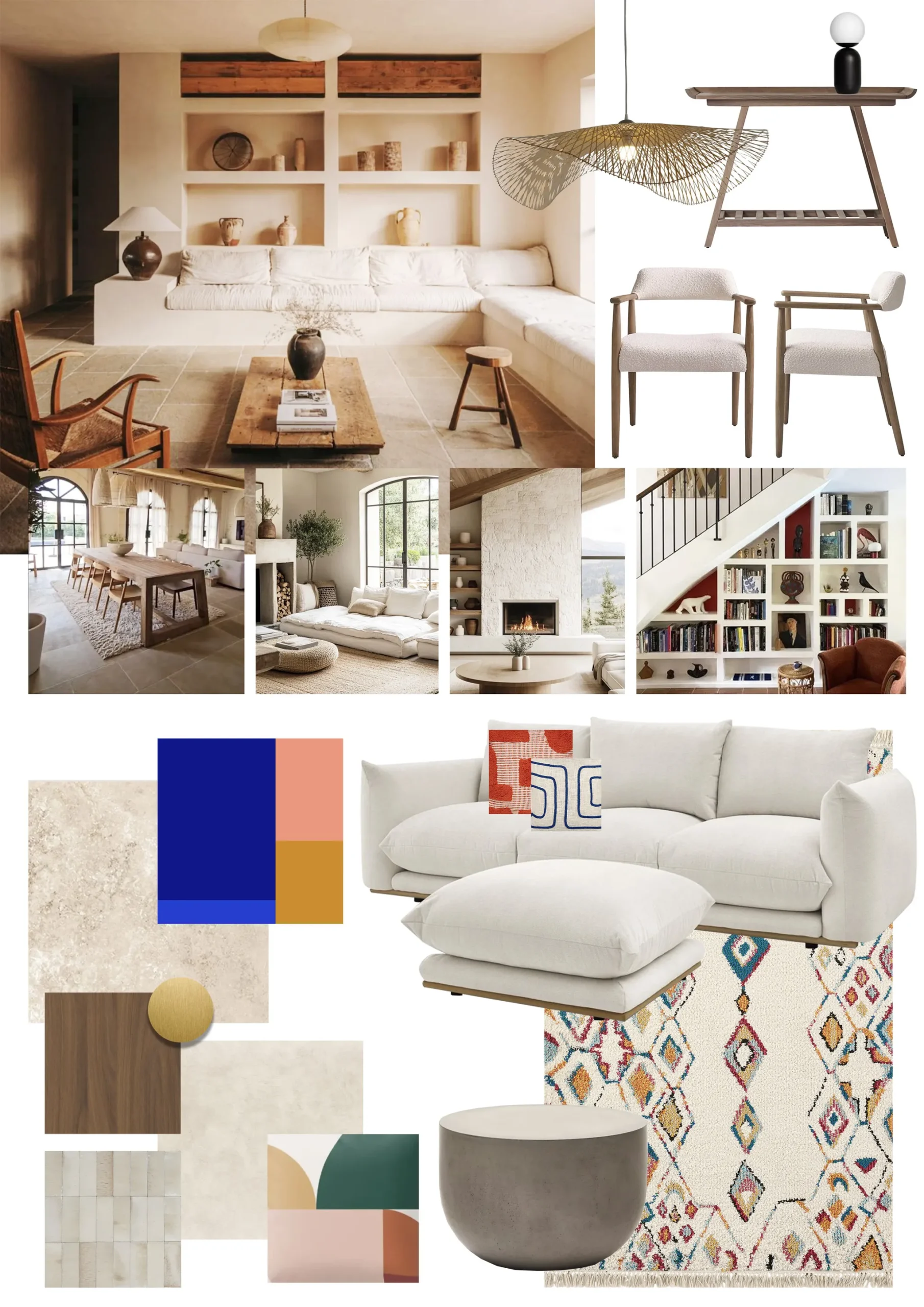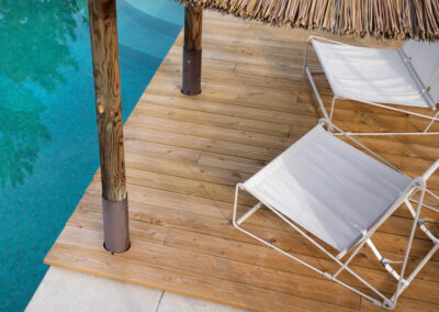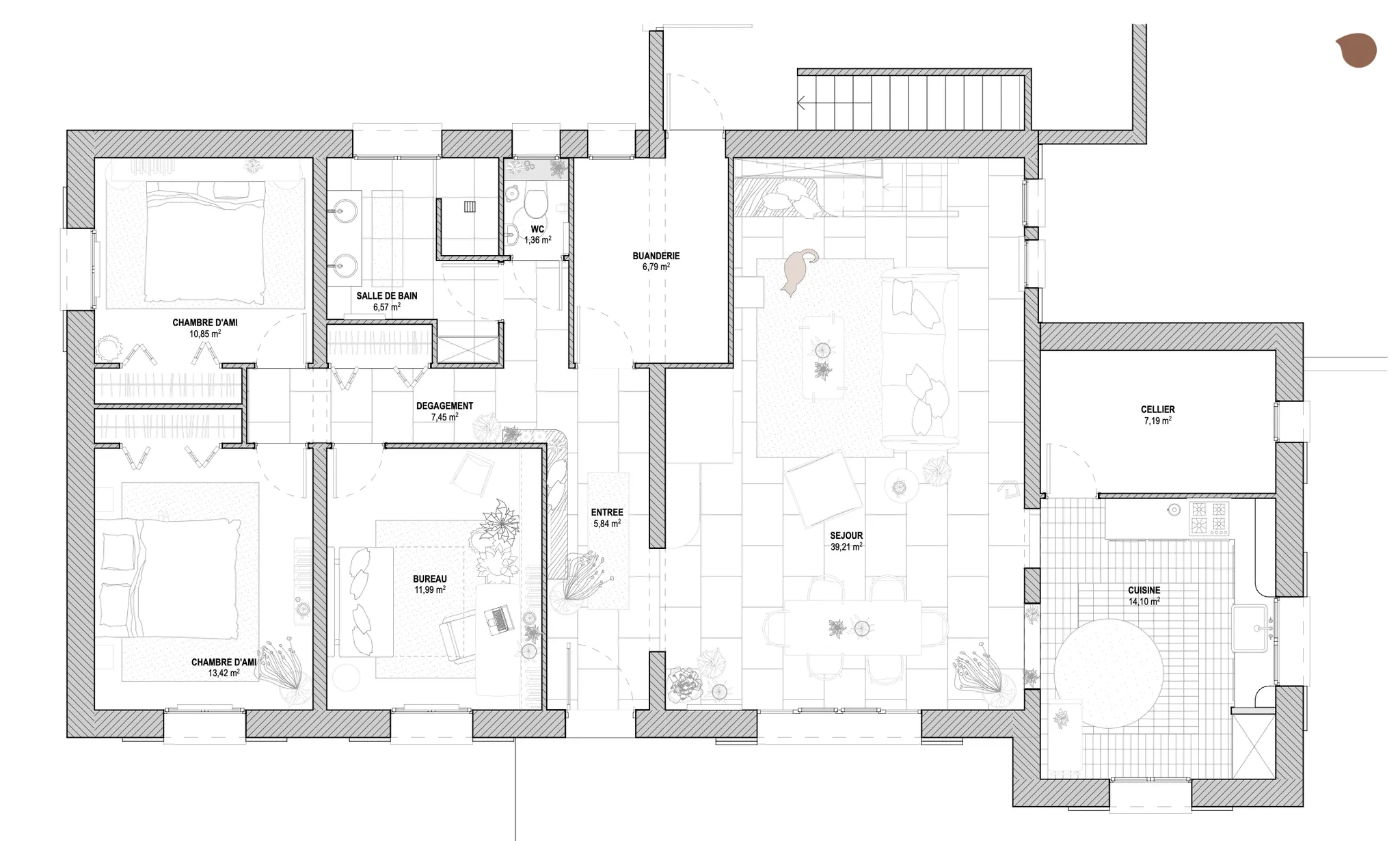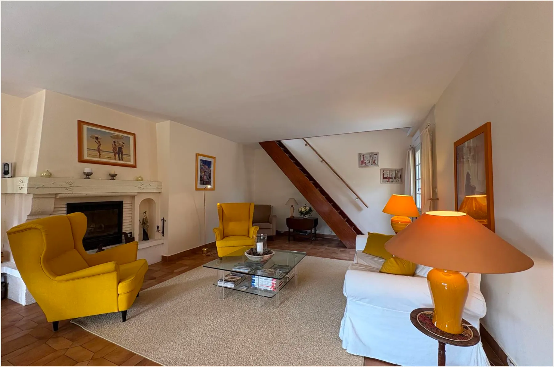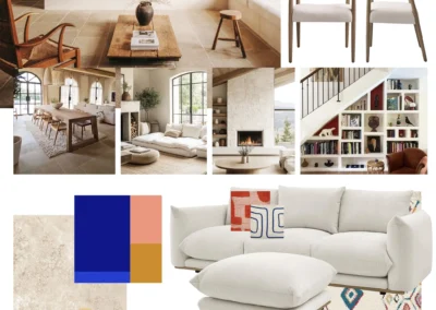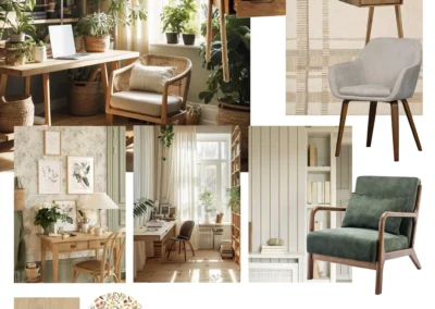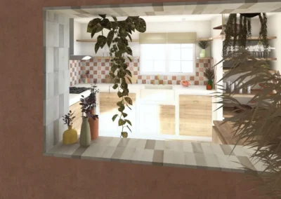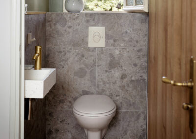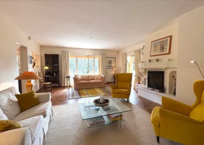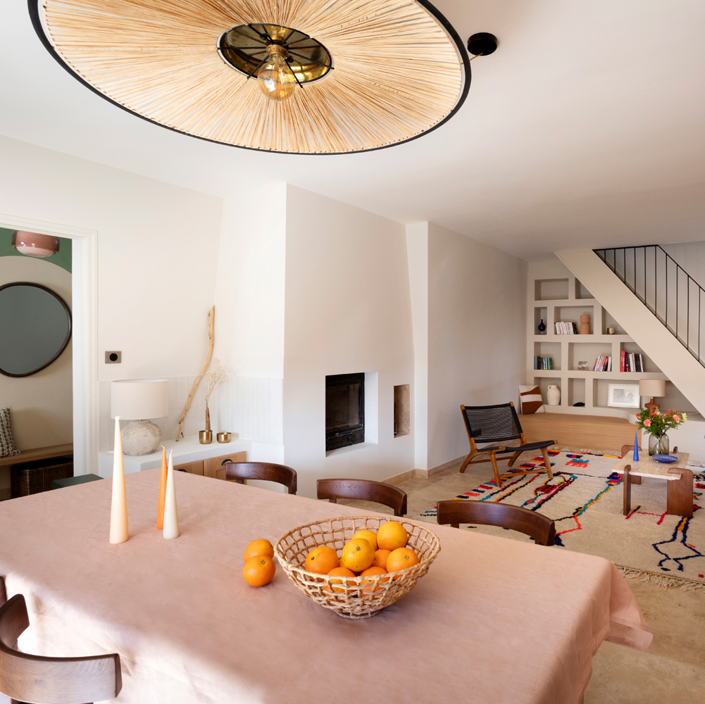 Le sol a été entièrement remplacé par un travertin aux nuances chaudes et subtiles, et les murs ont été enduits à la chaux pour une ambiance douce et minérale. Les pièces de vie comme les chambres, le séjour, la cuisine, le bureau, les WC et la salle de bain ont été repensées dans leur globalité, avec un changement complet du mobilier, sélectionné pour son esthétique, sa qualité et son écoresponsabilité.